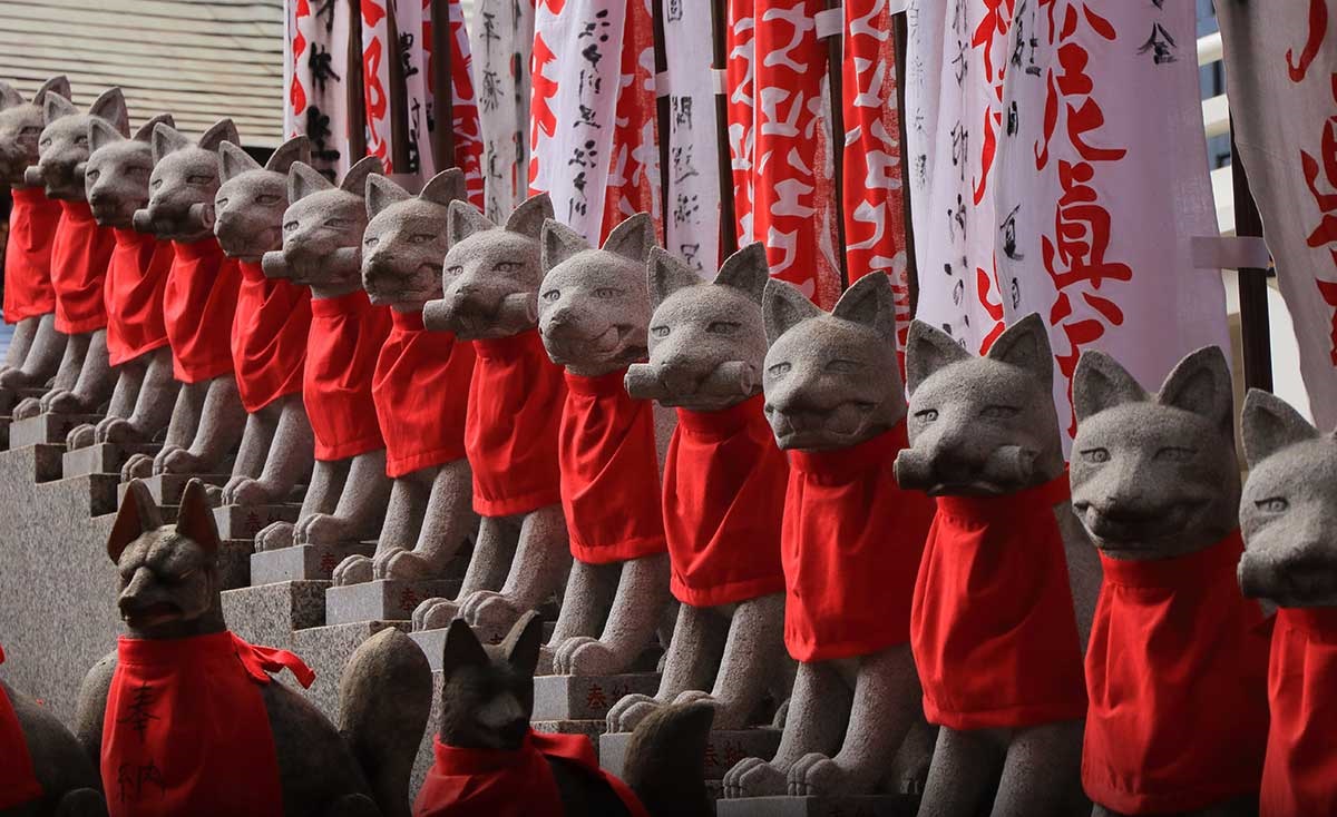 Được xây dựng vào năm 1951 ở Kawasaki, nơi gần trung tâm thành phố Tokyo nhất. Keihin Fushimi Inari cực kỳ độc đáo với những bức tượng cáo Inari với nhiều màu sắc khác nhau, 108 bức tượng tại đây đại diện cho 108 cám dỗ trần thế theo giáo lý Phật giáo. Mỗi con cáo đều có một biểu cảm khác nhau và là nét đặc trưng thú vị mà bạn chỉ có thể tìm thấy khi đến đây.