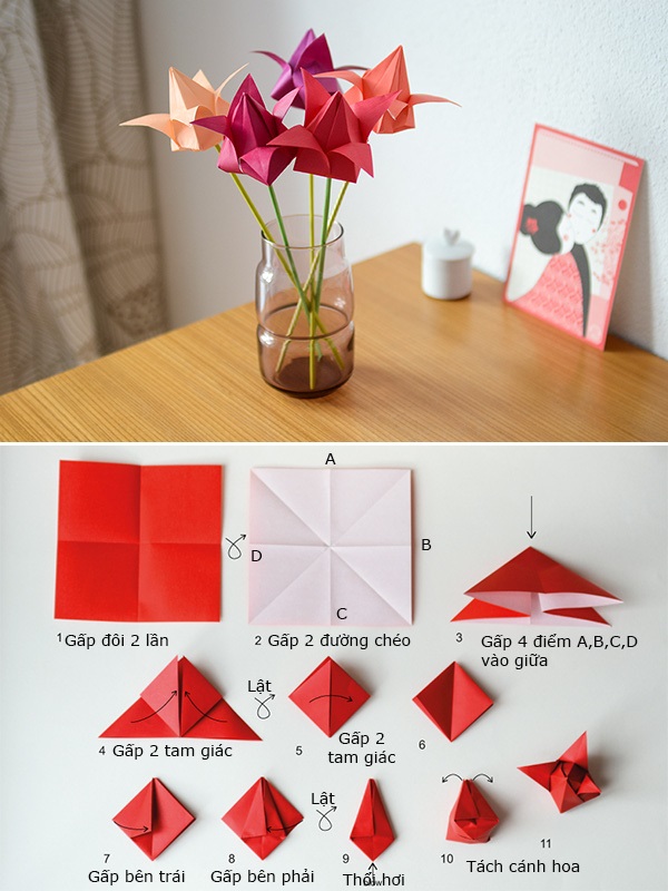 Gấp Origami hình bông hoa