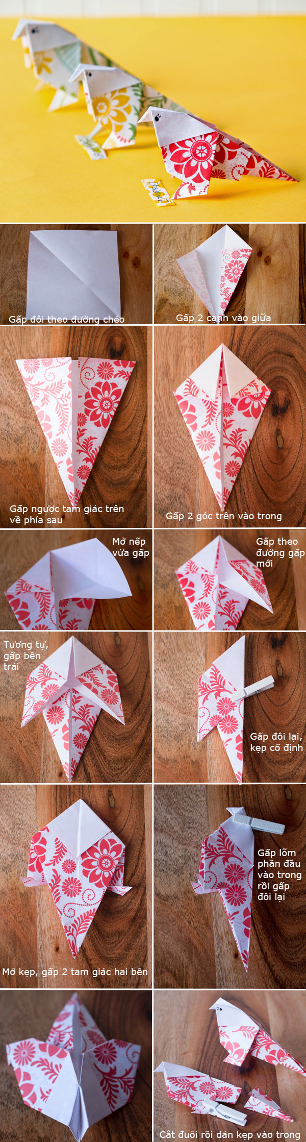 Gấp Origami hình con chim