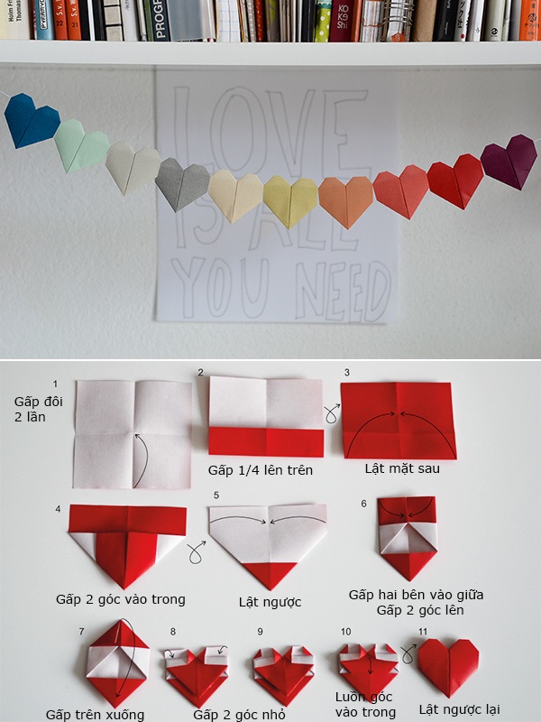 Gấp Origami hình trái tim